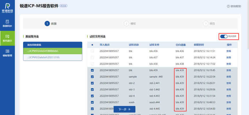 數(shù)據同步從銳譜 ICP-MS控制軟件的數(shù)據集中獲取數(shù)據,保證檢測數(shù)據的真實有效性;動態(tài)感知數(shù)據集的變化并同步數(shù)據,保證數(shù)據的及時性。對從銳譜 ICP-MS控制軟件獲取的數(shù)據進行物理存儲,可以被重復使用;減少對原軟件的依賴,也提高報表展示的效率。